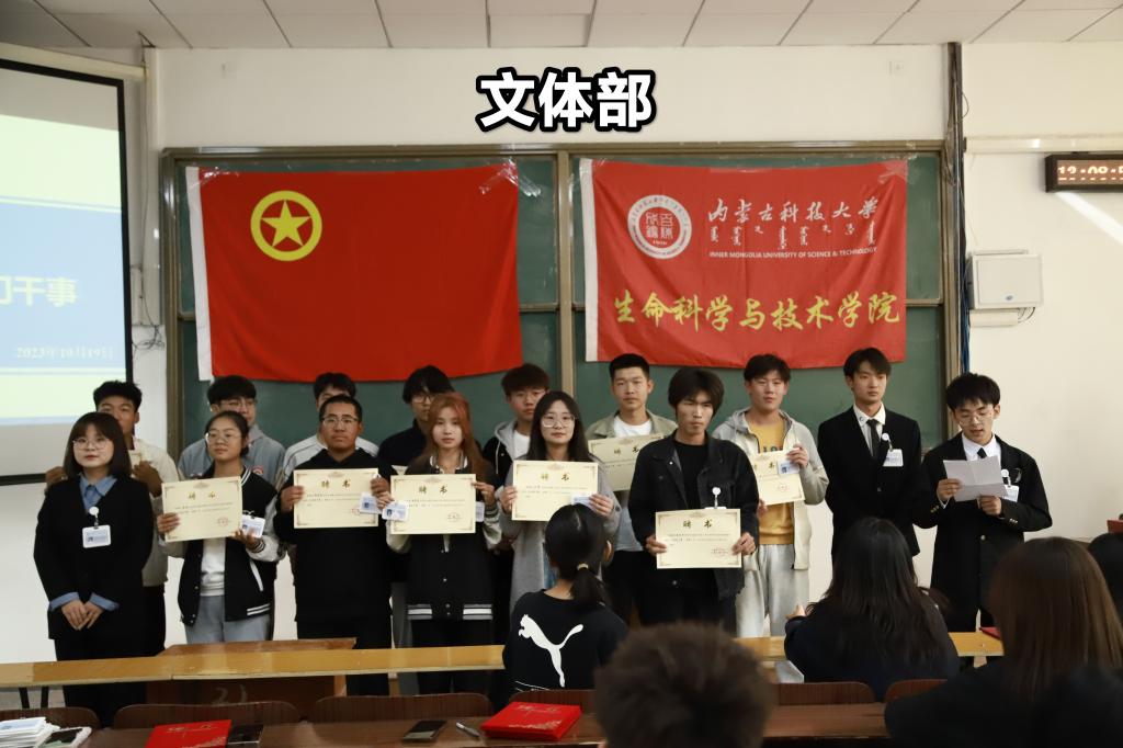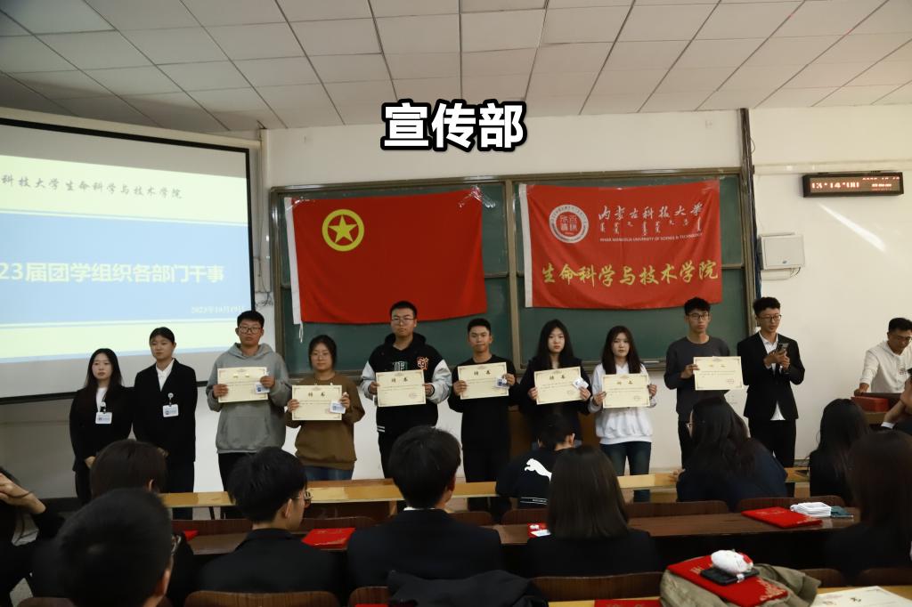 大会第六项:聘任2023届团学组织各部门干事。以部门为单位,部长携本部门成员依次上台,由部长为本部门干事颁发聘书和工作证,介绍本部门主要职责和部门成员的基本情况,并对任期内所承担工作做出表态与承诺。
