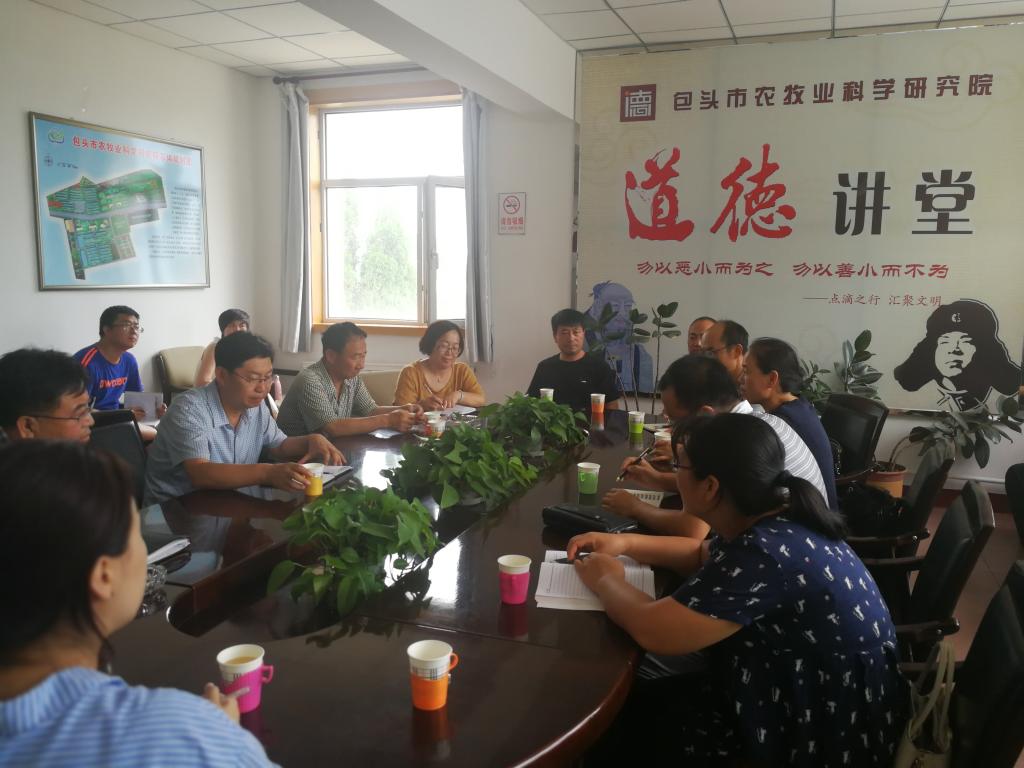 为加强公司学科方向的凝练和更好与地方经济结合,2018年7月13日,由公司植物学方向团队和应用微生物学团队一行8位教师来到包头市农科院座谈交流参观。市农科院经理高振江、副经理张仙保、总工程师尚春明等专家和各部门科技人员参加了座谈会。