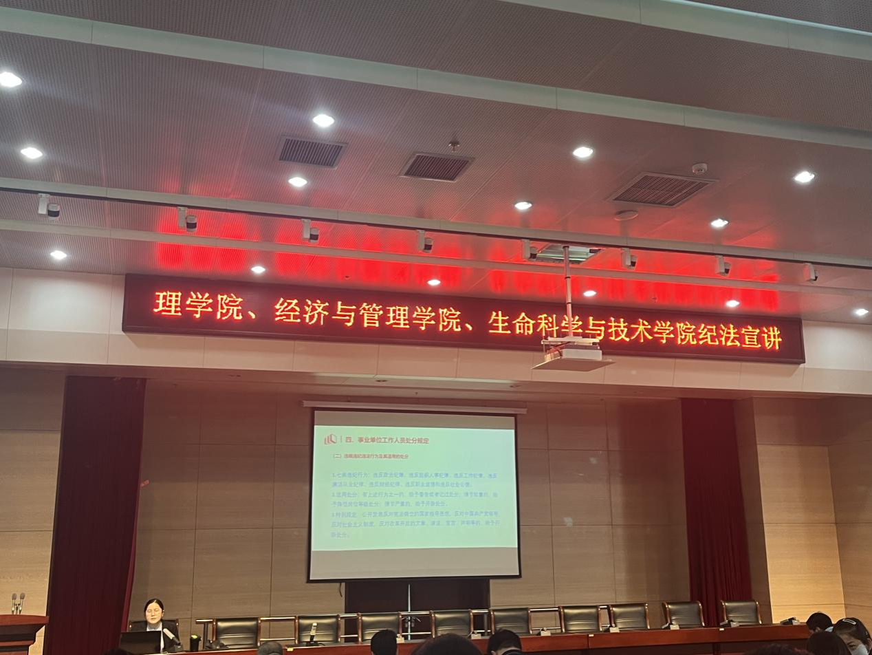 为进一步强化公司教职员工纪律教育和校园廉洁文化建设,促进教职员工提高纪法意识、丰富纪法知识,提升教职员工遵纪守法的思想自觉与行动自觉,切实维护好安全稳定的良好校园环境,4月25日下午,在图书馆B201报告厅,太阳成集团tyc33455cc与理公司、经济与管理公司一同邀请文法公司王彦老师为全体教师开展纪法宣讲。生科院杜志强经理主持,公司全体教职工参加宣讲。
