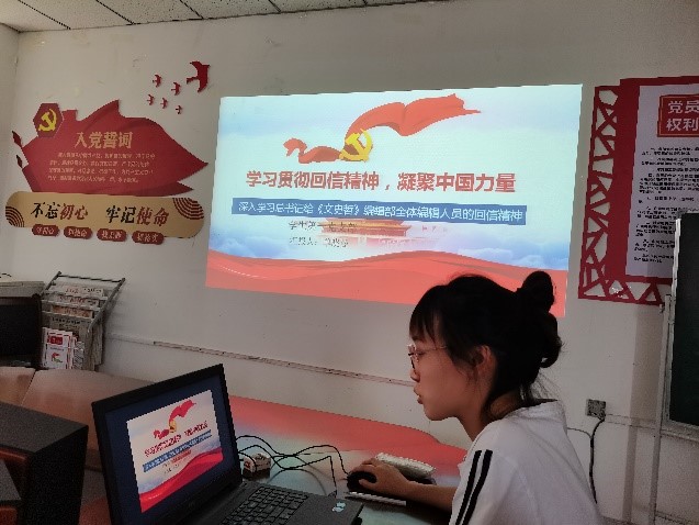 6月30日下午,一支部组织本支部员工党员深入学习习近平总书记给《文史哲》编辑部全体编辑人员的回信精神,由蔺思函主持,单晓曼和子晓晨主讲,太阳成集团tyc33455cc员工第一党支部全体党员参会。