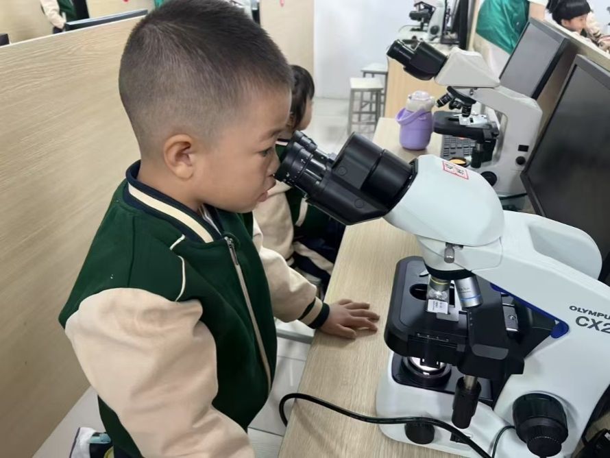 小朋友们观察微生物