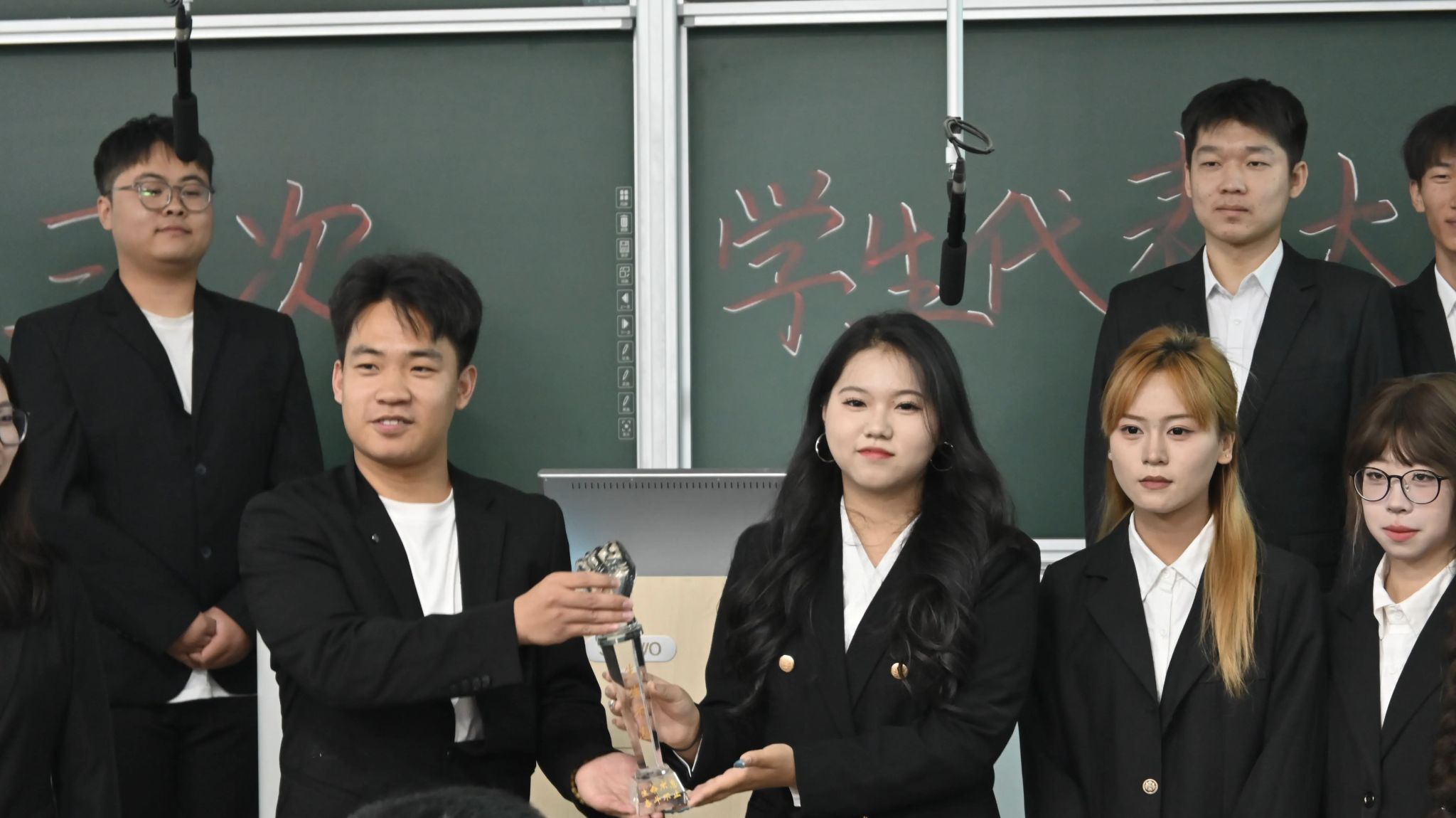 大会第六项聘任2025届员工组织部门部长,由2025届员工组织主席团成员为团委、员工会、班级管理委员会、考研与就业指导中心、老员工科技创新中心,青年媒体中心、自律委员会七大平行组织部门部长颁发聘书并佩戴工作证。